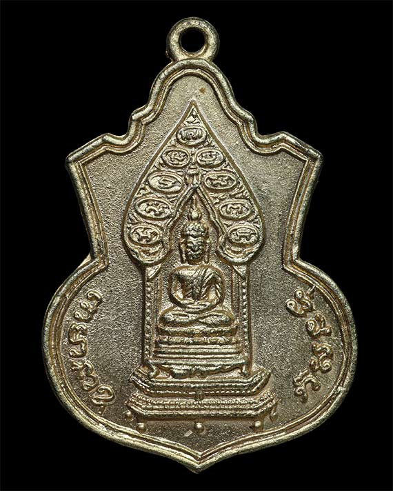 เคาะเดียวแดง เหรียญพัทธเสมาพระพุทธชินราช วัดเศวตฉัตรวรวิหาร((วัดบางลำภูล่าง)) คลองสาน กรุงเทพฯ พ.ศ.2493 กะไหล่ทอง สภาพสวย |