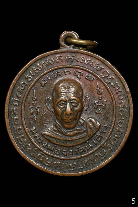เหรียญกลม หลวงพ่อจง วัดหน้าต่างนอก พิมพ์หลังสิงห์ (๓ ใหญ่ มีกลาก) เนื้อทองแดง ปี 2502 |