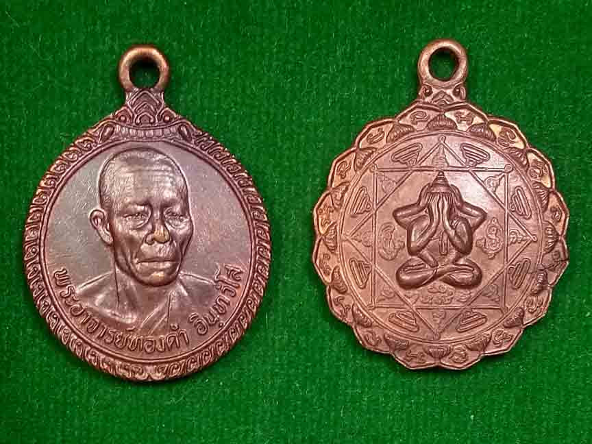 เหรียญพระอาจารย์ทองคำ อินทวังโสและเหรียญปิดตารุ่นแรกหลวงพ่อทองดำ วัดถ้ำตะเพี้ยนทอง ปี2523 |