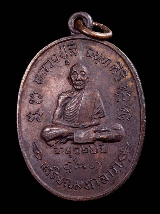 เหรียญหลวงปู่สี วัดเขาถ้ำบุญนาค พิมพ์หน้าแก่ เนื้อทองแดง ปี2519 |