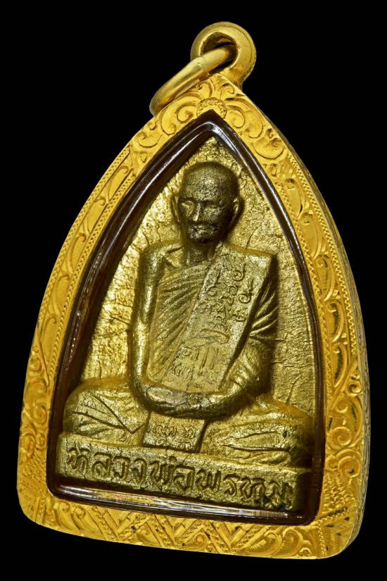 เหรียญหลวงพ่อพรหม รุ่นเสาร์5 มหาลาภ พิมพ์มีเม็ดงา ปี2516 เลี่ยมทอง |