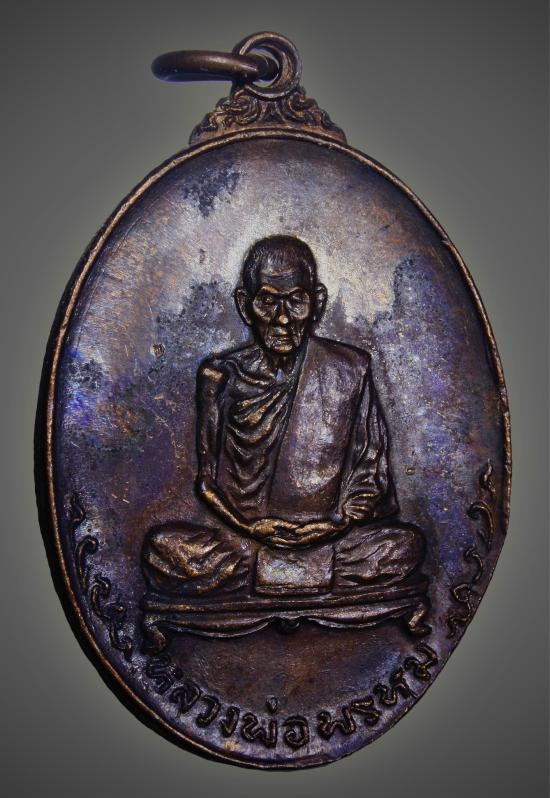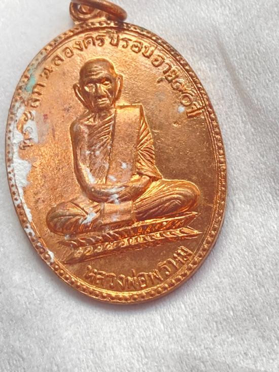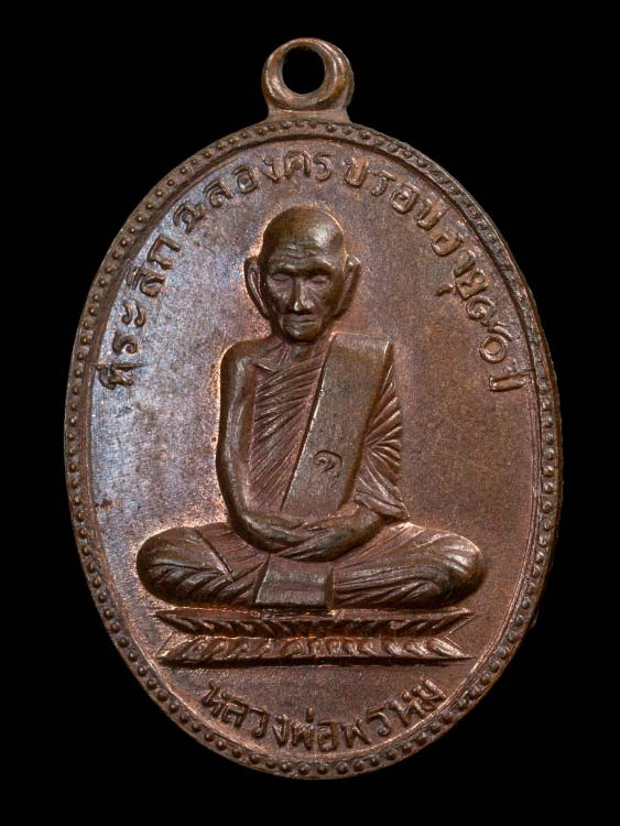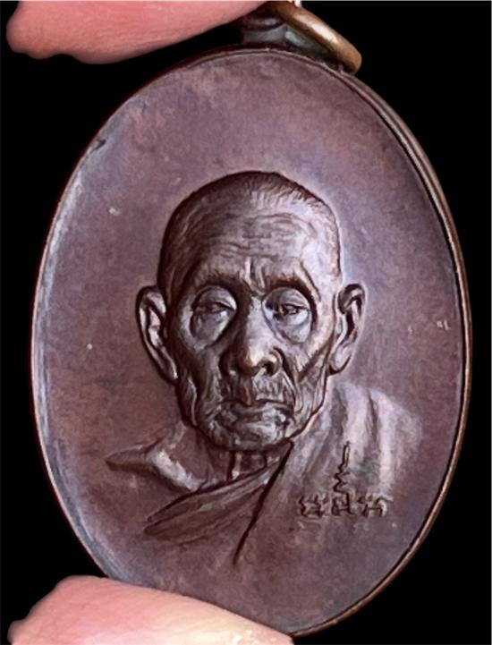 เหรียญฉลองอายุ 90 ปี เนื้อทองแดงผิวไฟแดงๆ เดิมๆ จมูกโด่งๆ เหรียญนี้พิเศษมีคราบแป้งเจิม |