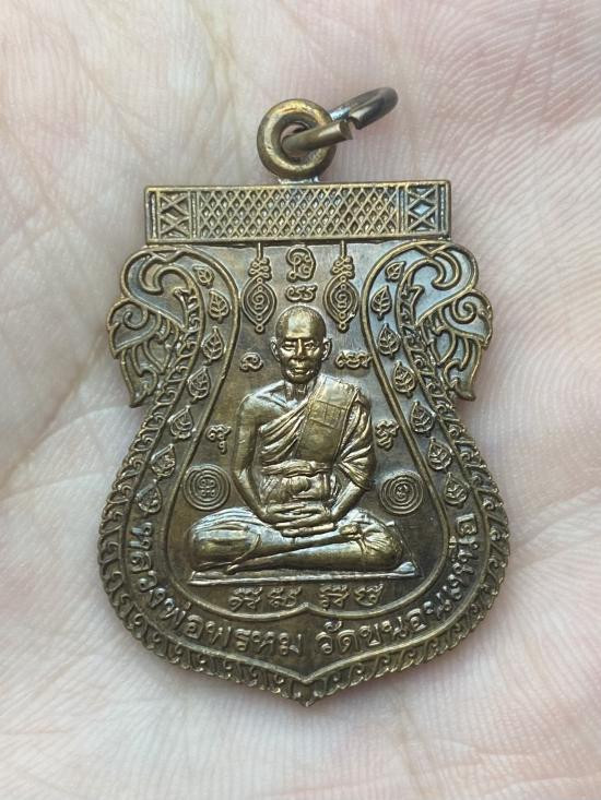 เหรียญหลวงพ่อพรหม พิมพ์โล่ใหญ่หลังอุหางโค้ง ปี 2516 สภาพใช้ พร้อมบัตรรับรอง |