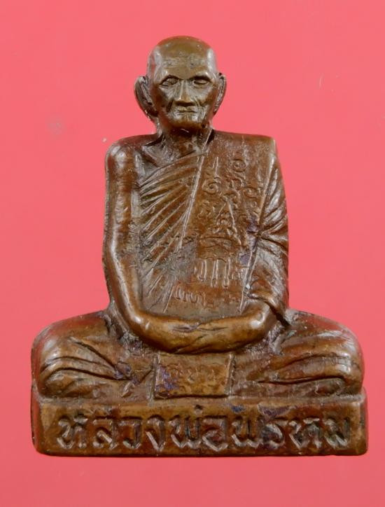 รูปเหมือนปั๊ม หลวงพ่อพรหม พิมพ์เข่ากว้างหลังเต็ม เนื้อทองแดง ปี2516 |