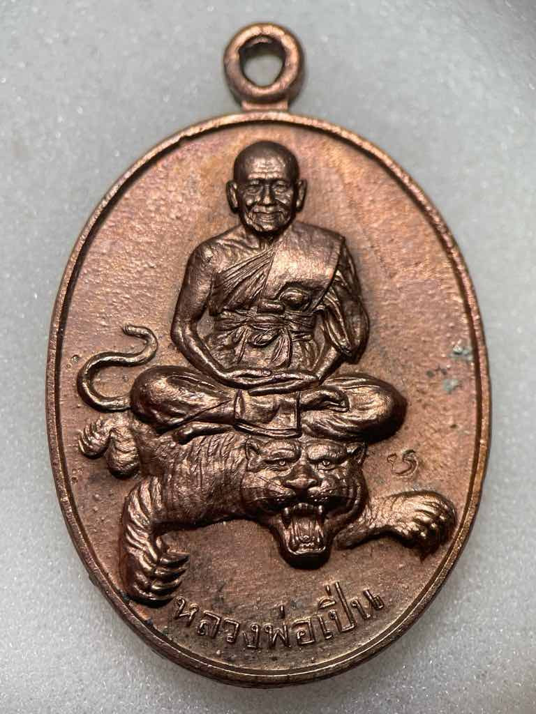 เหรียญปั้มแบน-พิมพ์รูปไข่ใหญ่-มีห่วง ((เนื้อทองแดง-ผิวไฟ-ผิวเดิมๆ)) ล.พ.เปิ่น ฐิตคุโณ วัดบางพระ จ.นครปฐม รุ่นเอกลักษณ์นั่งเสือ เมื่อ 22 กย. 2537 ((พร้อมกล่องเดิมๆ-ใหม่กริ๊บ-สวย-สมบูรณ์)) |