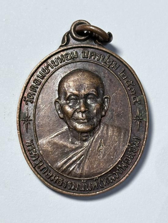 เหรียญหลวงพ่อเงิน วัดดอนยายหอม(ออกวัดท่ามะเดื่อ) เนื้อทองแดง ห่วงเดิม ปี2498 + บัตรG-pra สภาพเดิมค่ะ |