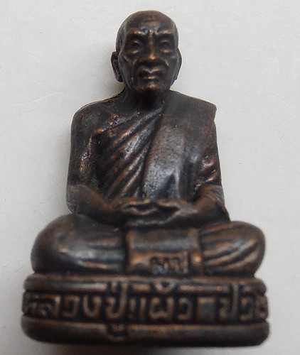 วัดใจ เหรียญอวยพร หลวงปู่แผ้ว วัดกำแพงแสน ปี 2548 ทองแดงรมดำ ตอกโค๊ด |