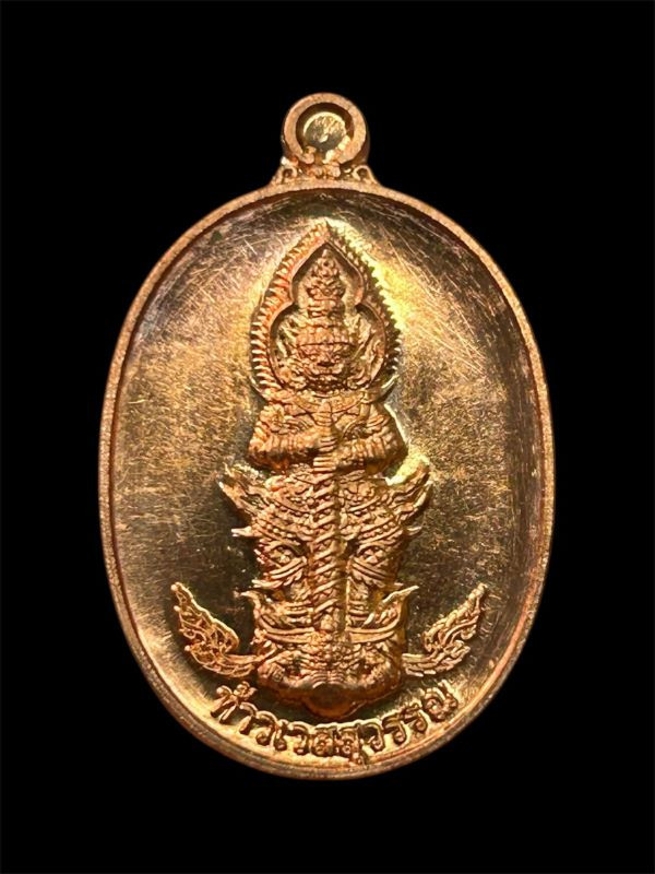 เหรียญท้าวเวสสุวรรณ หลวงปู่แผ้ว วัดรางหมัน จ.นครปฐม ปี 63 |