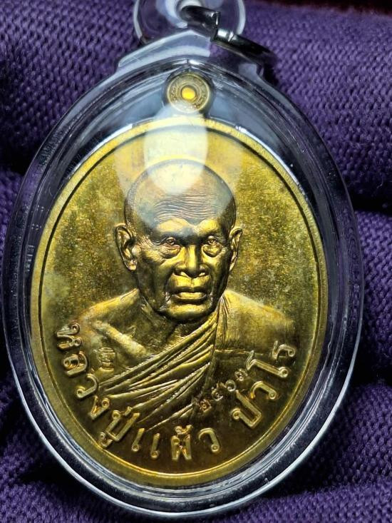 หลวงปู่แผ้ว วัดรางหมัน เหรียญแจกทานบารมี 99 อายุยืน ไม่ผ่านการใช้ครับ |