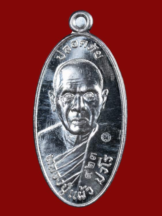 เหรียญใบขี้เหล็กหนุนดวง พิมพ์เล็ก หลวงปู่แผ้ว ปวโร วัดหนองพงนก จ.นครปฐม ปี 2554 เนื้ออัลปาก้า สวยเดิม เหรียญที่ 1 |