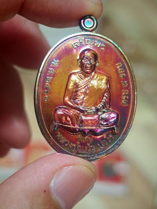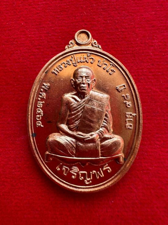 เหรียญเจริญพรบน หลวงปูแผ้ว ปวโร เนื้อทองแดง สภาพสวยครับ พร้อมกล่อง (2) |