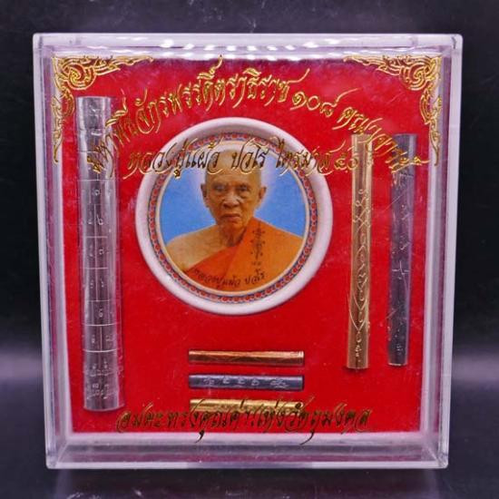 !!!!วัดใจ 9 บาท!!!! ตะกรุดชุดชุดใหญ่กรรมการ หลวงปู่แผ้ว ปวโร รุ่นไตรมาส 50 ตะกรุด 6 ดอก พร้อมลูกเซรามิค หน้าหลวงปู่แผ้ว หลังสมด็จองค์ปฐม วัดเจริญราษฎร์บำรุง (วัดหนองพงนก) |