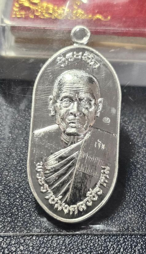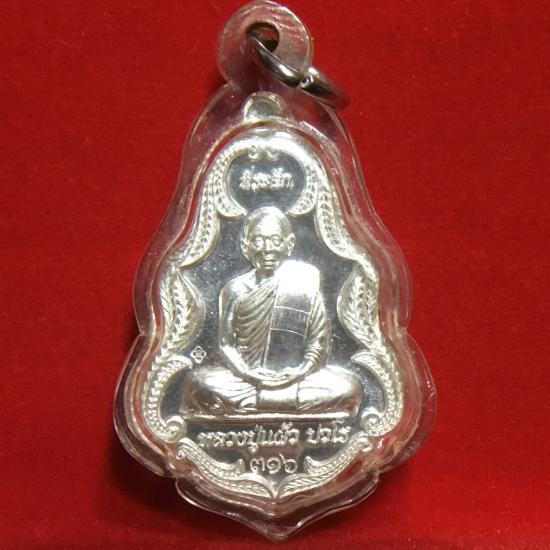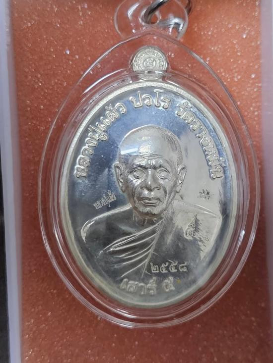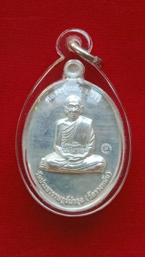 เหรียญนั่งพาน หลวงปู่แผ้ว ปวโร วัดรางหมันปี 2551 เนื้อเงิน หมายเลข 030 |