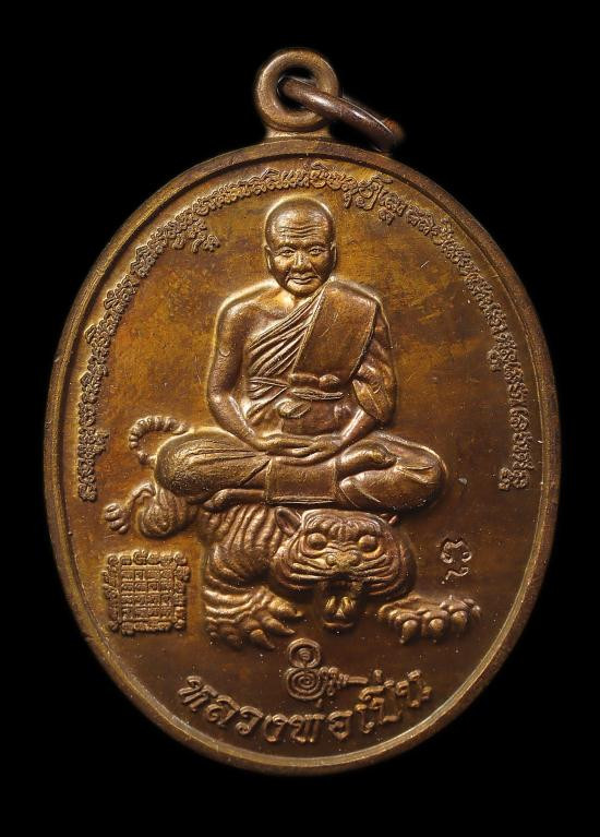 เหรียญเสมาหลังเสือ หลวงพ่อเปิ่น วัดบางพระ ทองแดงรมดำ ปี2552 พร้อมกล่องเดิม แดง110 |