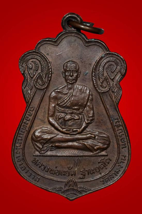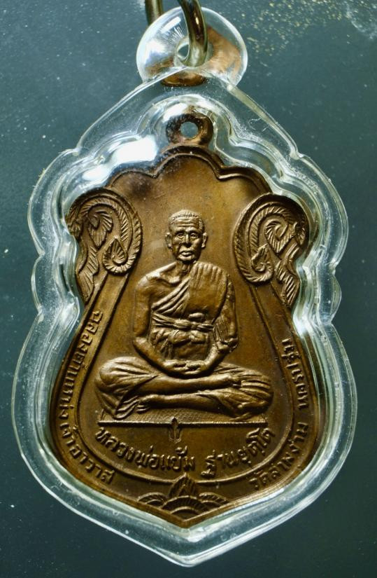 เหรียญหลวงปู่แผ้ว รุ่นใบขี้เหล็กหนุนดวง(พิมพ์เล็ก) วัดเจริญราษฎร์บำรุง (วัดหนองพงนก ) จ.นครปฐม ปี ๒๕๕๑ |