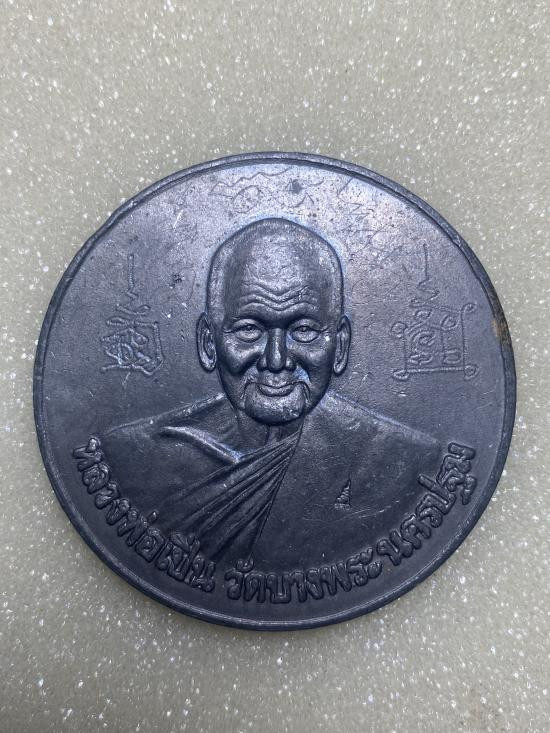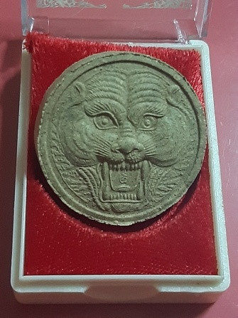 เหรียญ กลมหลวงพ่อเปิ่น วัดบางพระ นครปฐม หลังหน้าเสือ ดาบไขว้ ปี 2536 |