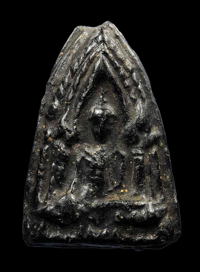 พระสมเด็จปรกโพธิ์ หลวงพ่อแช่ม วัดดอนยายหอม พิมพ์หลังแบบพระปิดตาพุทโธ เนื้อผงน้ำมันผสมว่าน |