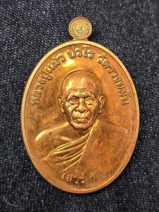 เหรียญ ประทานพร หลวงปู่แผ้ว วัดกำแพงแสน จ.นครปฐม ปี 2549 เนื้อทองแดง |