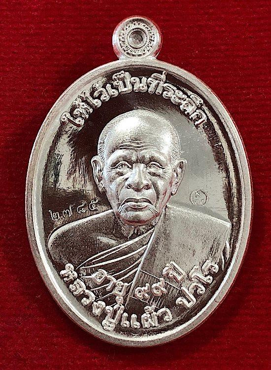 หลวงปู่แผ้ว ยันต์สวน99 วัดรางหมัน เนื้อเงินผิวกระจกใสวิ้งๆ จมูก100 เลข 2785 มีกล่องเดิม สวยแชมป์ๆ |