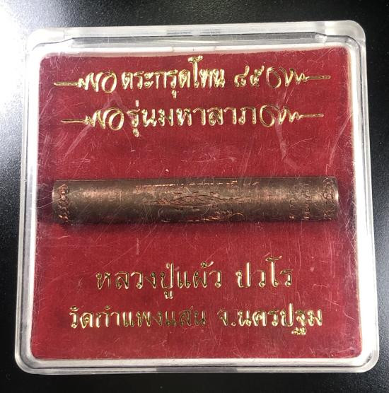 เคาะเดียวแดง ตะกรุดโทน 85 รุ่นมหาลาภ หลวงปู่แผ้ว วัดกำแพงแสน นครปฐม |