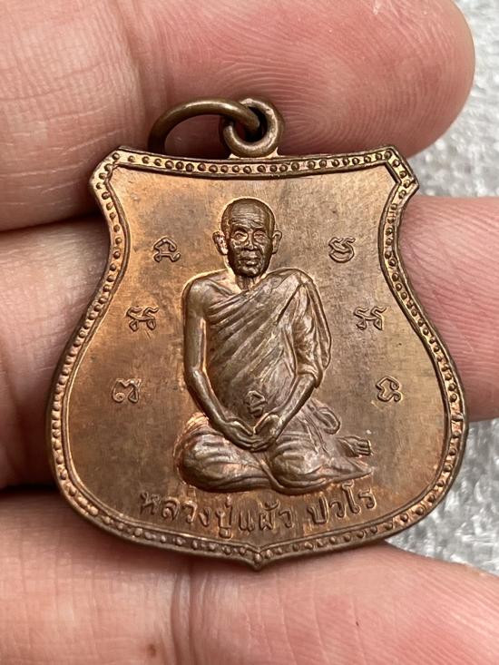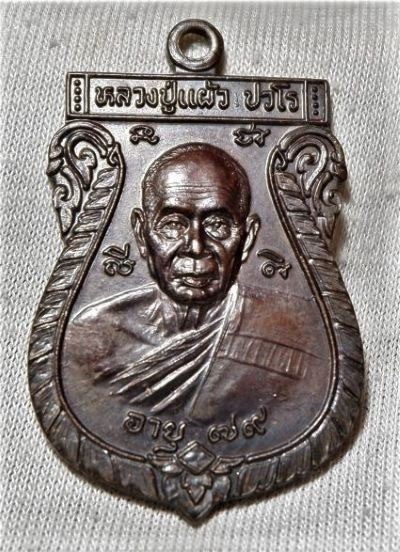เหรียญเสมาเนื้อทองแดง หลวงปู่แผ้ว อายุ 79 วัดกำแพงแสน ปี45 |