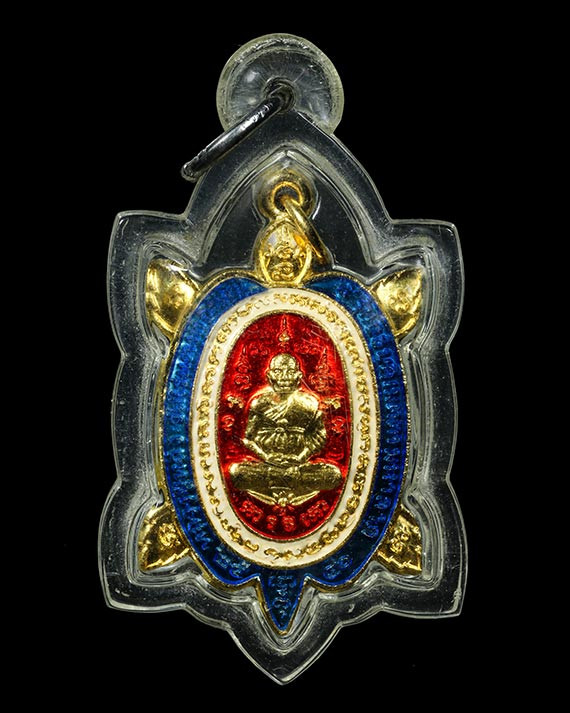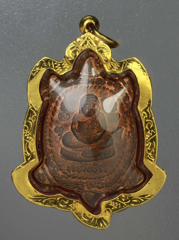 เคาะเดียวแดง เต่าหล่อโบราณหลวงปู่หลิว 2536 เนื้อทองฝาบาตร |