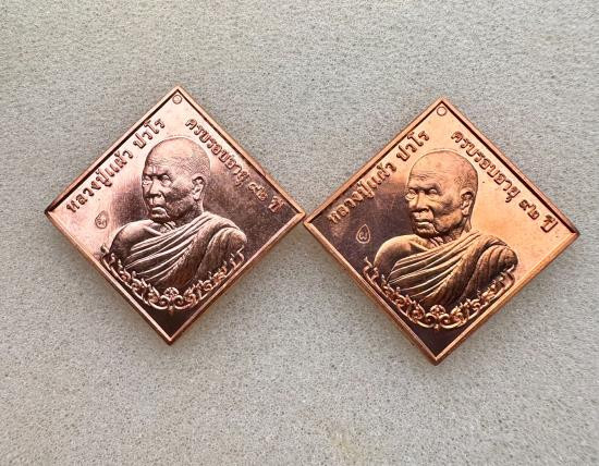 เหรียญข้าวหลามตัดหลวงปู่แผ้ว วัดรางหมัน ปี 57 ครบรอบอายุ 92 ปี เนื้อทองแดงผิวไฟ สภาพสวยตอกโค๊ตชัดเจน มีมา 2 เหรียญ |