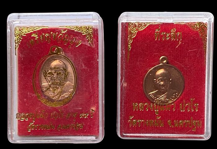 เหรียญหลวงปู่แผ้ว ปวโร วัดรางหมัน จ.นครปฐม 2 องค์สวยเดิมพร้อมกล่องครับ |