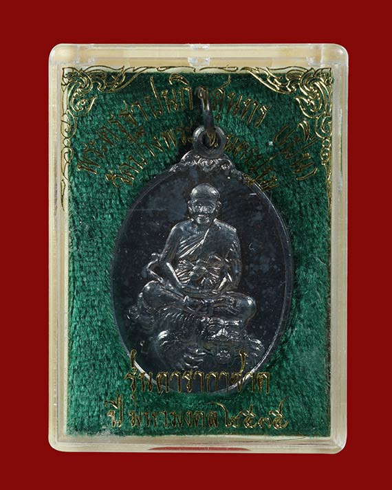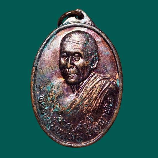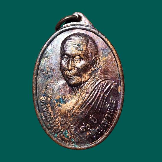 เหรียญธงยาวหลวงพ่อไสว วัดปรีดาราม จ นครปฐม ปี2538 เนื้อทองแดงผิวไฟ ตอกโค้ดชัด |