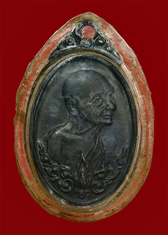 เคาะเดียวแดง เหรียญหลวงพ่อพัฒน์ รุ่นเจริญพรล่าง พิมพ์นั่งเต็มอง เนื้อชนวน |