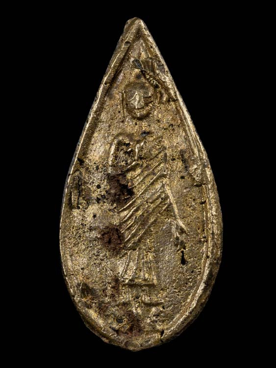 พระคันธารราษฎร์ หลวงพ่อน้อย วัดธรรมศาลา พิมพ์หยดน้ำ ปี 2500 เนื้อทองเหลือง |