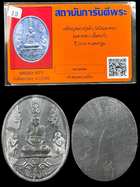 เหรียญเต่าหลวงปู่หลิวครับ พร้อมกล่องเดิมครับ พระบ้านผมเหมามาเยอะ วัดใจเท่าไหนเท่านั้นทุกรายการครับ |
