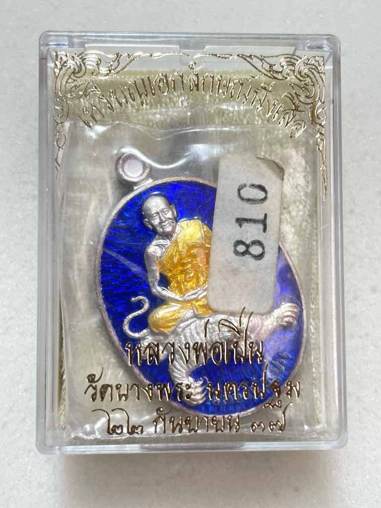 100.- ems เหรียญยอดนิยม เอกลักษณ์นั่งเสือ หลวงพ่อเปิ่น วัดบางพระ จ.นครปฐม ปี 37 เนื้อเงินลงยาสีน้ำเงิน no.810 (รวมผล=9) ไม่ผ่านการใช้ สวยเดิมๆ จมูก100 กล่องเดิม ซองเดิม คากล่อง #หายาก |