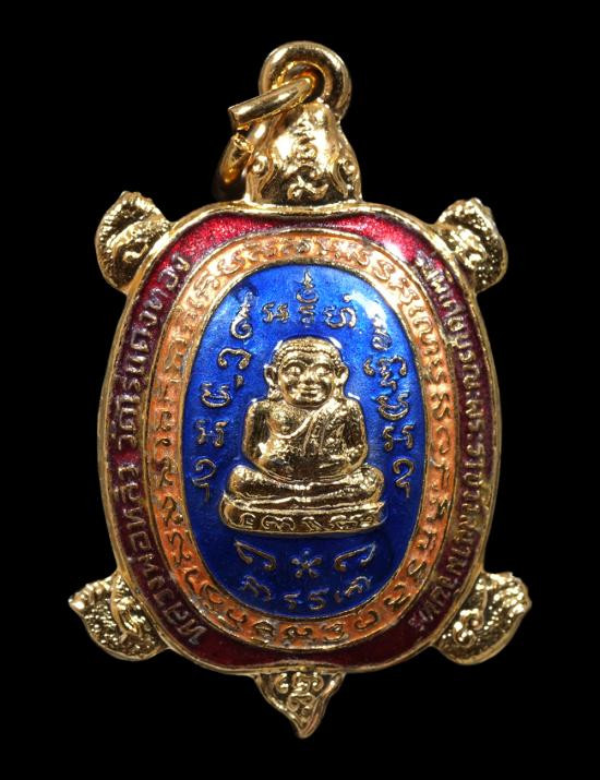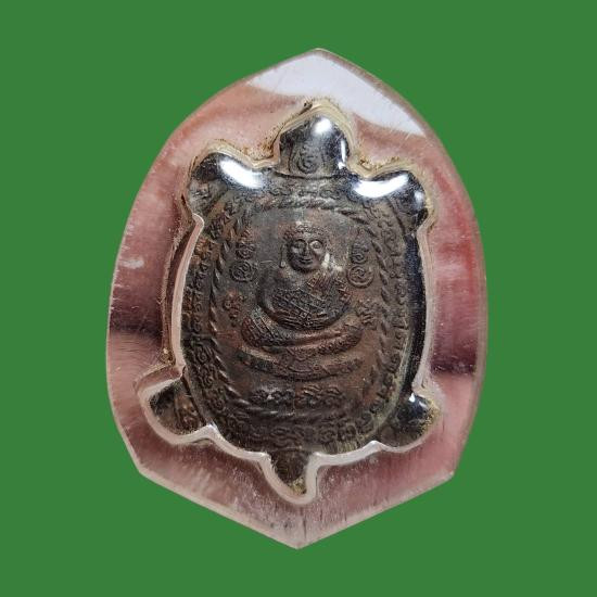 เหรียญพญาเต่าเรือน รุ่นขวัญใจมหาชน(คนจน) หลวงปู่หลิว จัดสร้างโดยวัดไร่แตงทอง เมื่อปี 2537 ทองแดง แดงแปร๊ด เลี่ยมทองพร้อมห้อย |