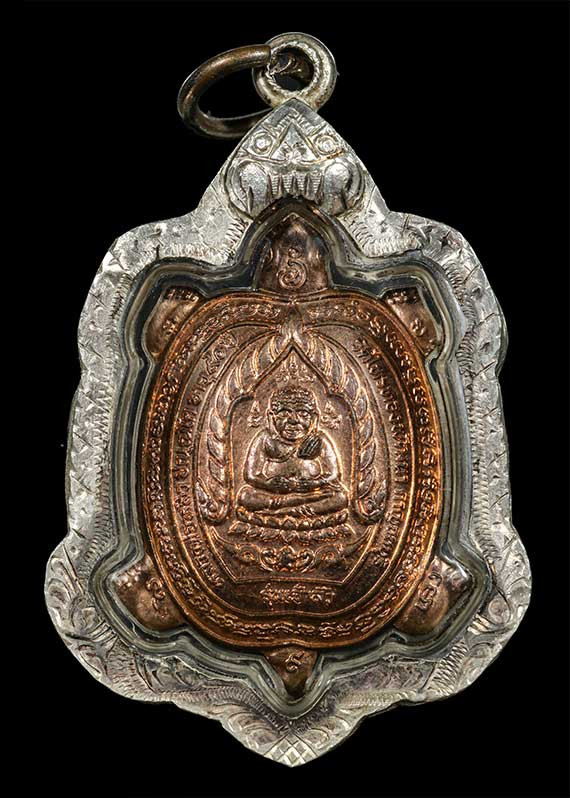 เหรียญพญาเต่า หลวงพ่อหลิว วัดไร่แตงทอง รุ่นบูรณะพระราชวังสนามจันทร์ ปี 2538 เนื้อกะไหลทองลงยา ตอกโค๊ด |