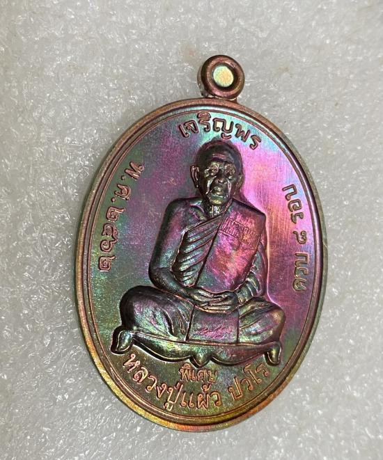 หลวงปปู่แผ้ว ปวโร วัดรางหมัน เหรียญรุ่น เเจกทานบารมี วาระ ๙๙ ปี (เนื้อทองเเดงผิวรุ้ง) เขี่ยวๆเหนี่ยวทรัพย์ |