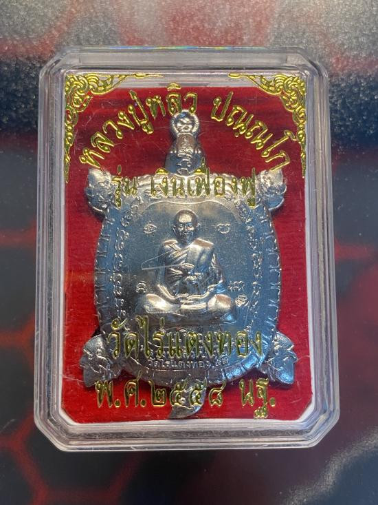 หลวงปู่แผ้ว ลาภผลพูนทวี วัดรางหมัน เนื้อเงินผิวกระจก จมูก100 เลข2093 มีกล่องเดิม คัดสวยๆ |