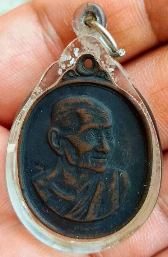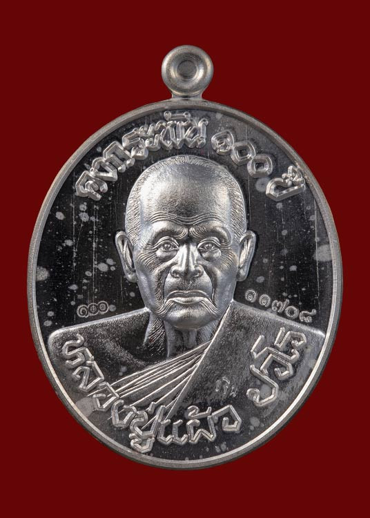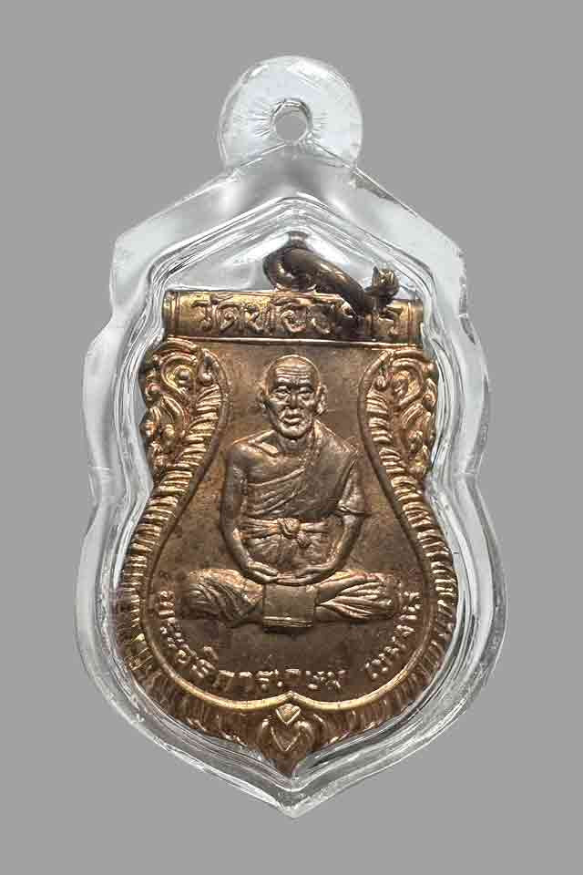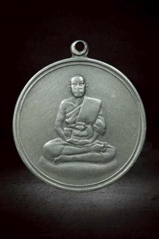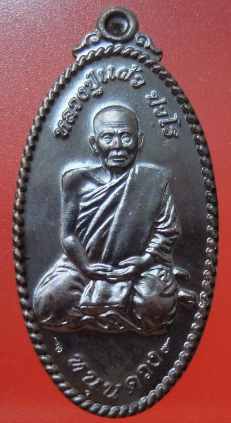 เหรียญห่มคลุม หลวงปู่หลิว วัดไร่แตงทอง จังหวัดนครปฐม สร้างขึ้นในปี พ.ศ. 2534 เนื้อนวะโลหะ |