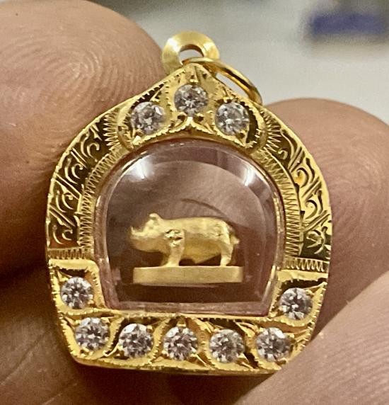 หมูจิ๋ว มหาลาภ หลวงพ่อเปิ่น วัดบางพระ เนื้อทองคำแท้ ปี 41 เลี่ยมทองพร้อมบูชา |