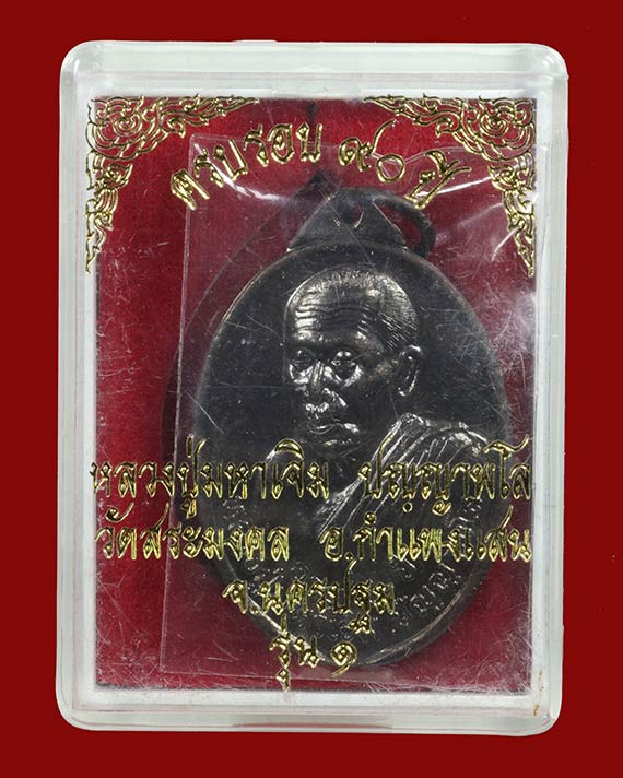 เคาะเดียวเเดง เหรียญนั่งพานเนื้อเงินหลวงพ่อเปิ่น วัดบางพระ นครปฐม รุ่นฉลองอายุครบ 6 รอบ ปี2537 |