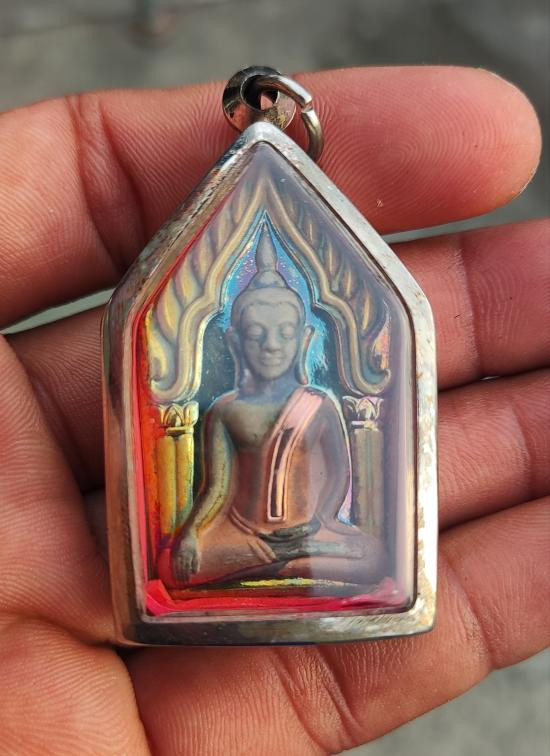 หลวงปู่แผ้ว ยันต์สวน99ปี วัดรางหมัน เนื้อเงินผิวกระจก จมูก100 เลข 2031มีกล่องเดิม คัดสวยๆ |
