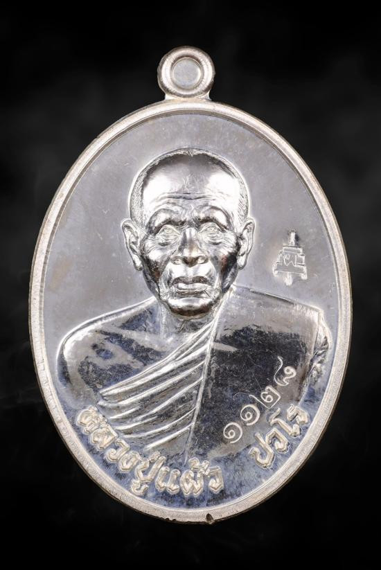 เคาะแรกแดง+ เหรียญ หลวงปู่แผ้ว ปวโร วัดรางหมัน รุ่น ลายพระหัตถ์(เราสู้) "เนื้อเงิน" ปี2555 |