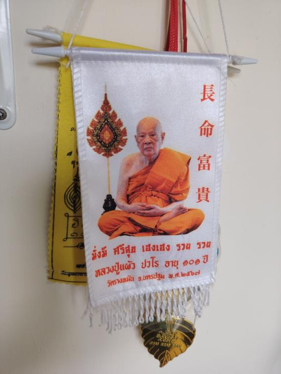 ผ้ายันต์แขวนหน้ารถ หลวงปู่แผ้ว วัดรางหมัน |