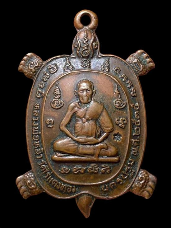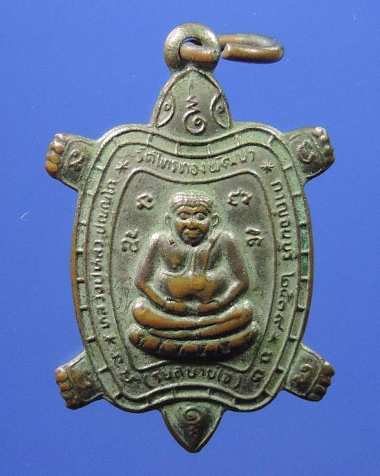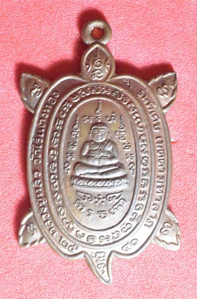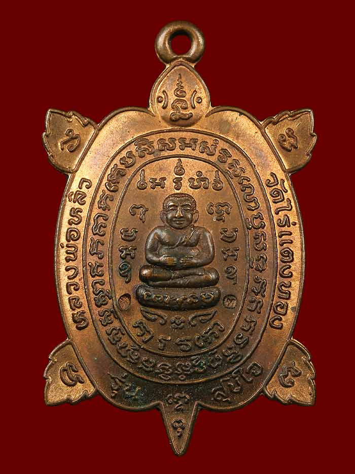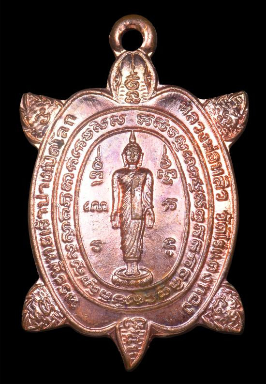 เหรียญเต่าหลวงปู่หลิว วัดไร่แตงทอง รุ่นเปิดโลก พิมพ์กลาง เนื้อทองแดง ปี 2539 |