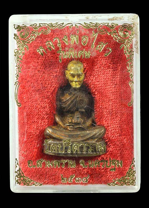 รูปหล่อหลวงปู่หลิว วัดไร่แตงทอง รุ่นกองทัพบกสร้าง เนื้อนวะโลหะ ปี2539 พร้อมบัตรและกล่องเดิมครับ |