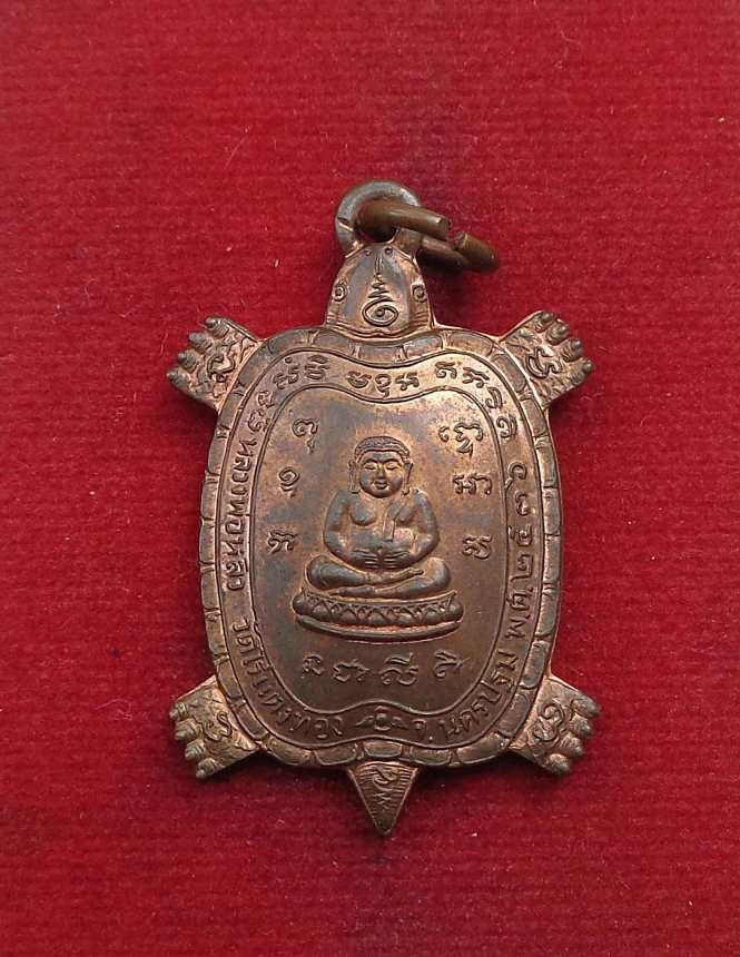 เหรียญพญาเต่าเรือน หลวงปู่หลิว วัดไร่แตงทอง จ.นครปฐม รุ่นสุขใจเนื้อทองแดง ปี 2536 สภาพสวย ตอก 2 โค๊ต ผิวไฟแดงๆๆ |