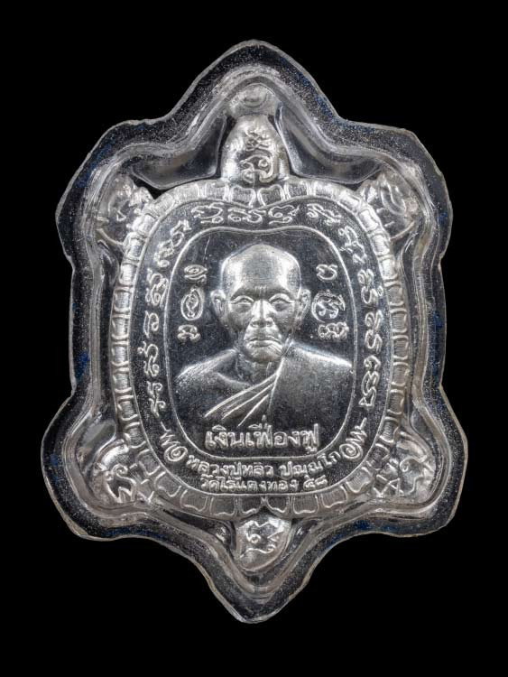 วัดใจ"""100บาท เหรียญพญาเต่าเรือน หลวงปู่หลิว ปางเปิดโลก พิมพ์จิ๋ว เนื้อเงิน บล็อกนิยม เลี่ยมโบราณ |