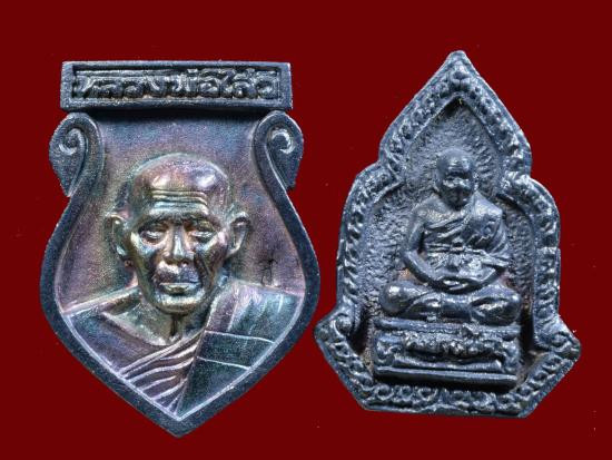เหรียญหลวงพ่อปลั่ง วัดหนามแดง หลัง หลวงพ่อเงิน วั ดดอนยายหอม นครปฐม สวยเดิม2เหรียญ |