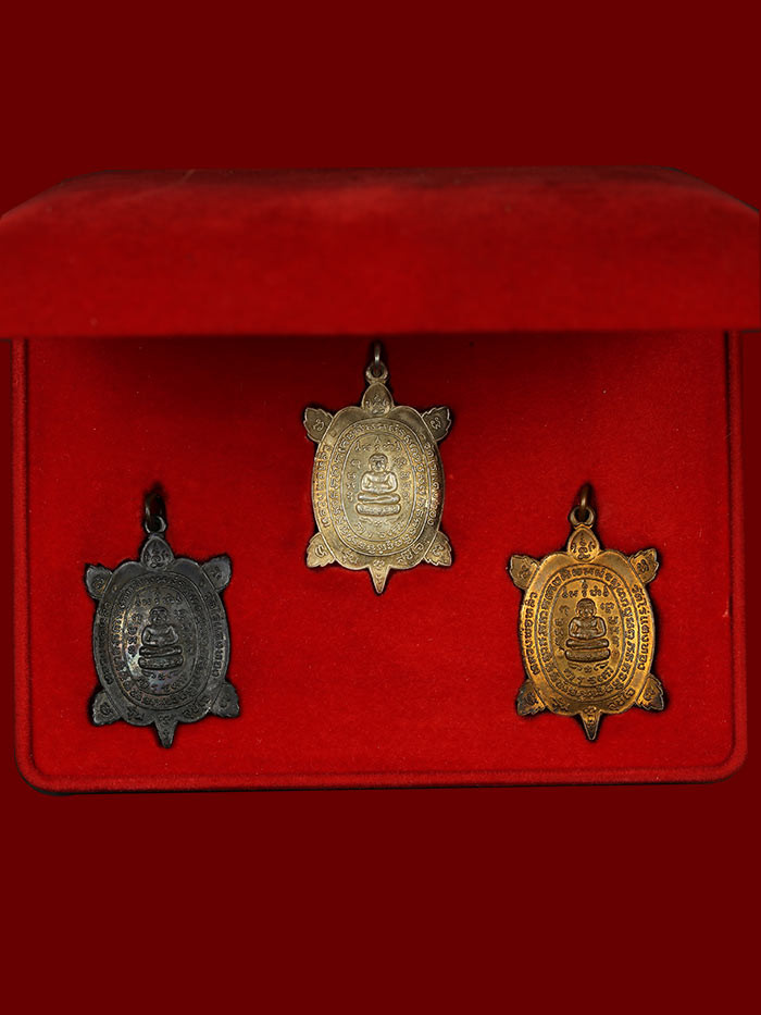 เหรียญพญาเต่าเรือน หลวงปู่หลิว รุ่นรวมพลัง มหาลาภ เนื้อตะกั่วสนิมแดง วัดไทรทองพัฒนา กาญจนบุรี ปี 2539 (หลวงปู่หลิวสร้าง และเคยจำพรรษาที่วัดนี้) องค์ที่ 3 |
