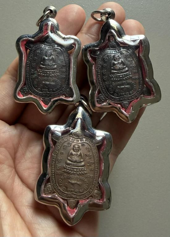 วัดใจ40 เหรียญพญาเต่าเรือนหลวงปู่หลิวพิมพ์พระสังขจาย ทรงสัตว์ วัดไร่แตงทอง จ.นครปฐม เนื้อทองเเดง ตอกโค๊ด รวม3เหรียญ |